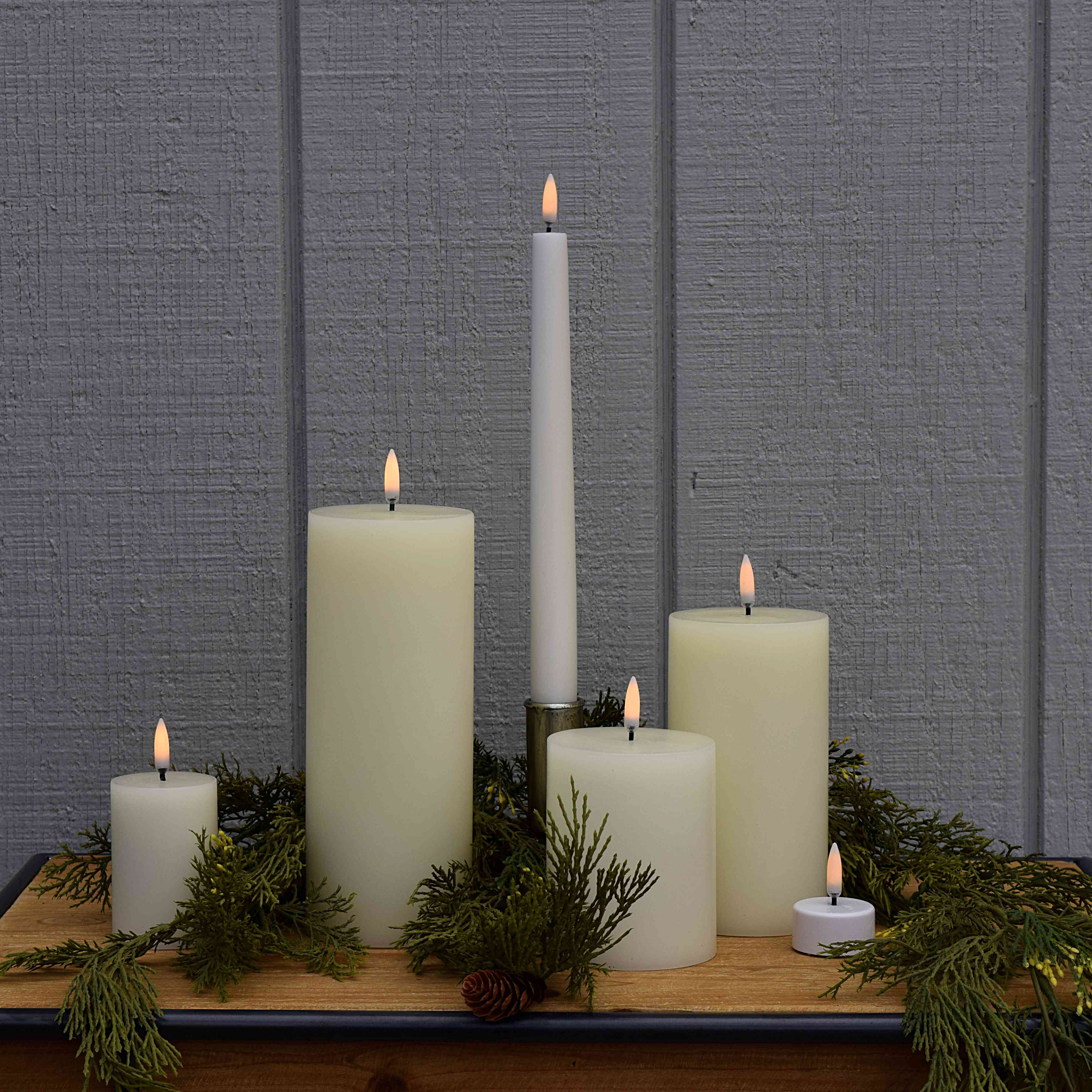 This beautiful range of flameless candles adds the finishing touch to any room, for anyoccasion, or any setting. Enjoy the warming glow from one single pillar candle, orexperience the romance of a table lined with taper candles in an assortment of heightsand a collection of colours. The possibilities are limitless.