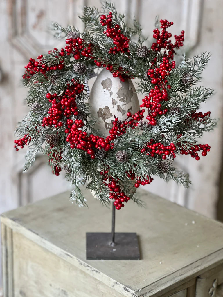 Allow the Winterberry Charm to deliver just that!  Pretty icy snowy greenery is laden with sprigs of bright berry clusters and dashed with small pine cones.  Definitely a collection that abounds in all of the wintery wonderfulness!