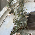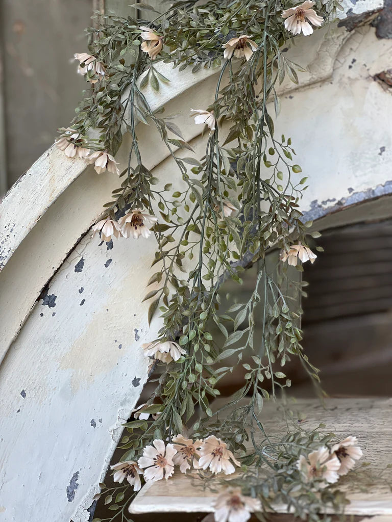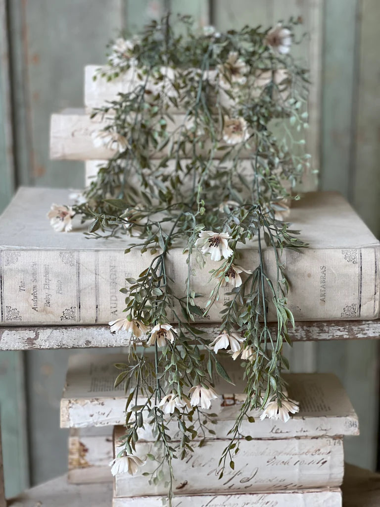 Creamy cosmos are laced throughout mixed sage greenery to create a beautiful melody of soft neutrals perfect for season spanning use.
