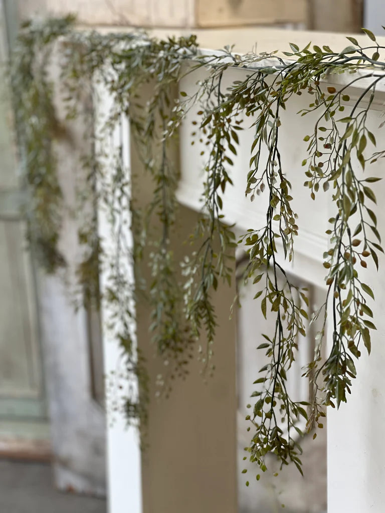 An airy collection that features an abundance of petite, mixed leaves.  Sweet and delicate, it pairs well with other items. The weeping garland is an extremely versatile addition to this line with its long draping strands of leaves that form a “veil” of greenery that can be used in so many ways!