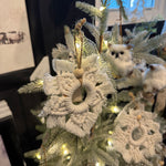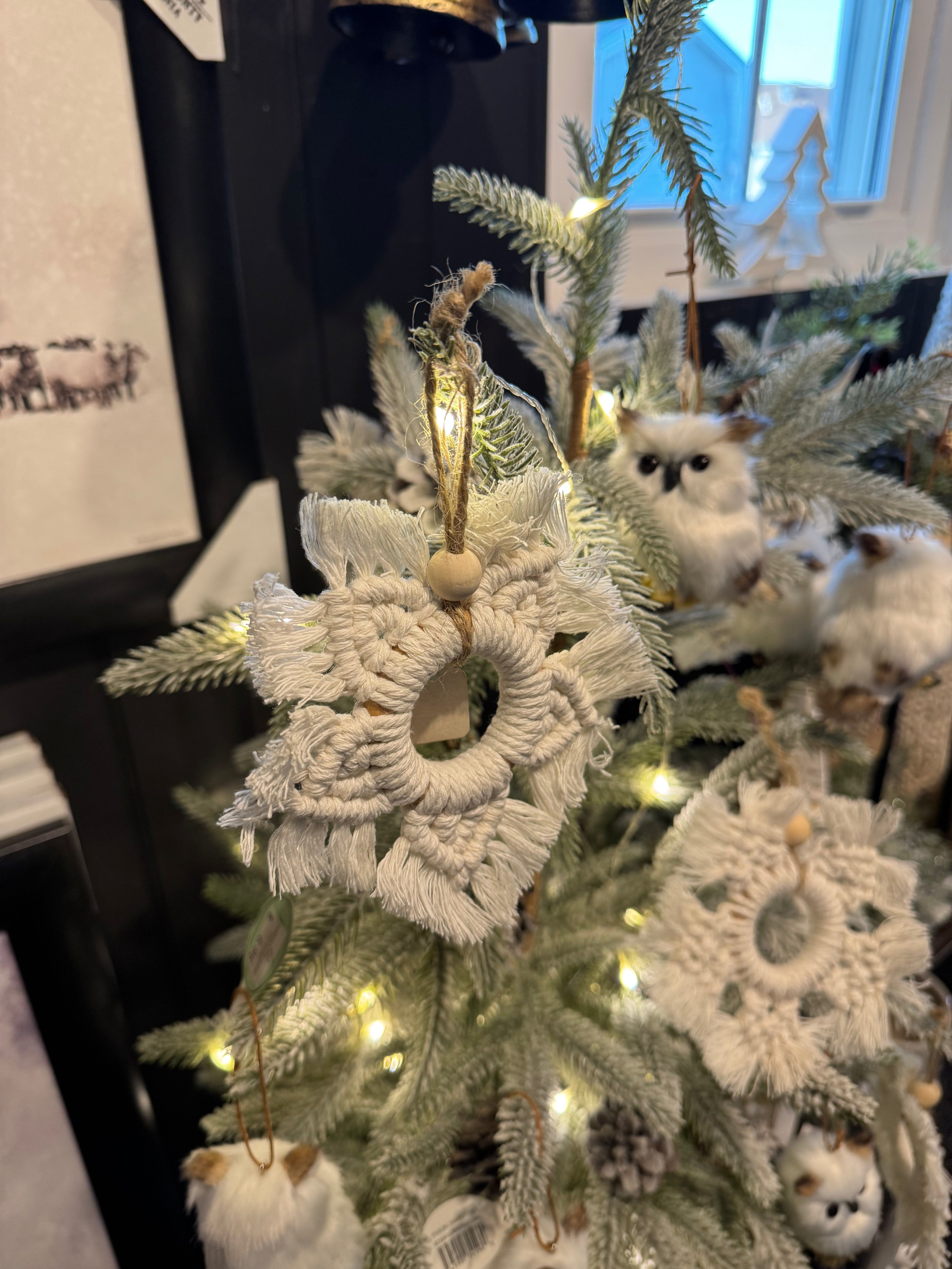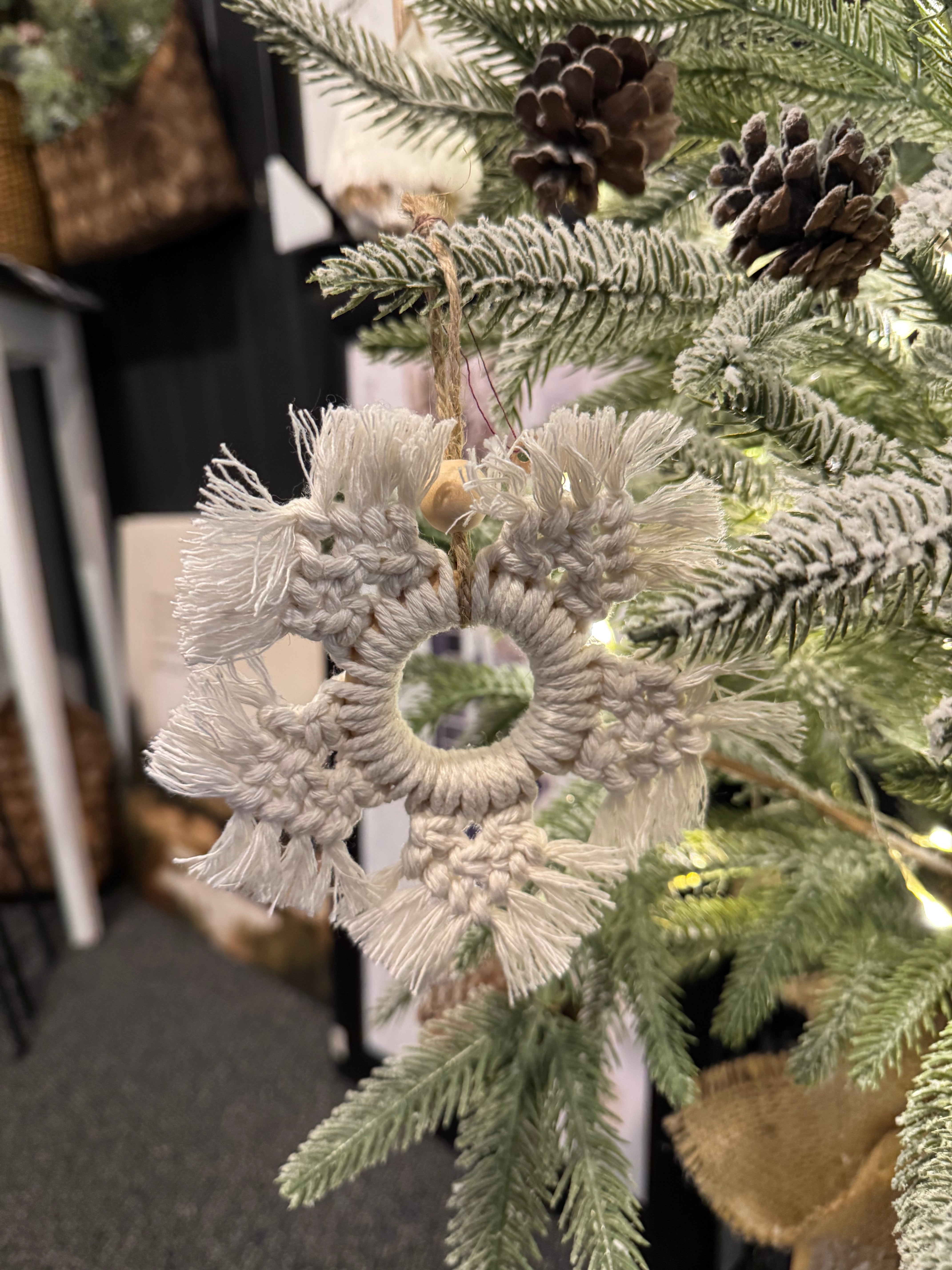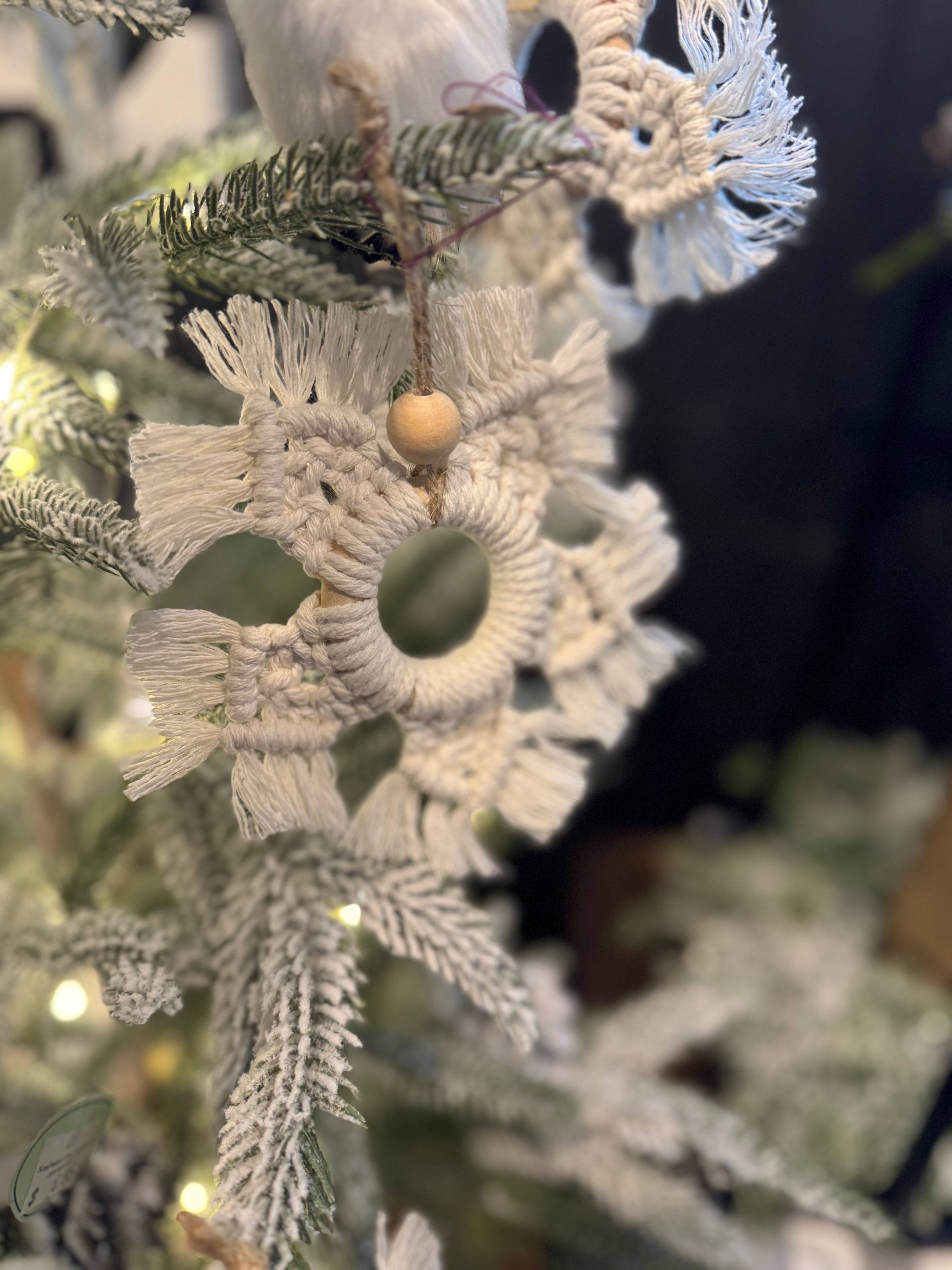 This beautiful handmade macrame ornament is the perfect Elevate your holiday decor with our Handmade Macrame Ornament. Each ornament is carefully crafted by hand, making it a unique addition to your Christmas tree or the perfect finishing touch to any gift.