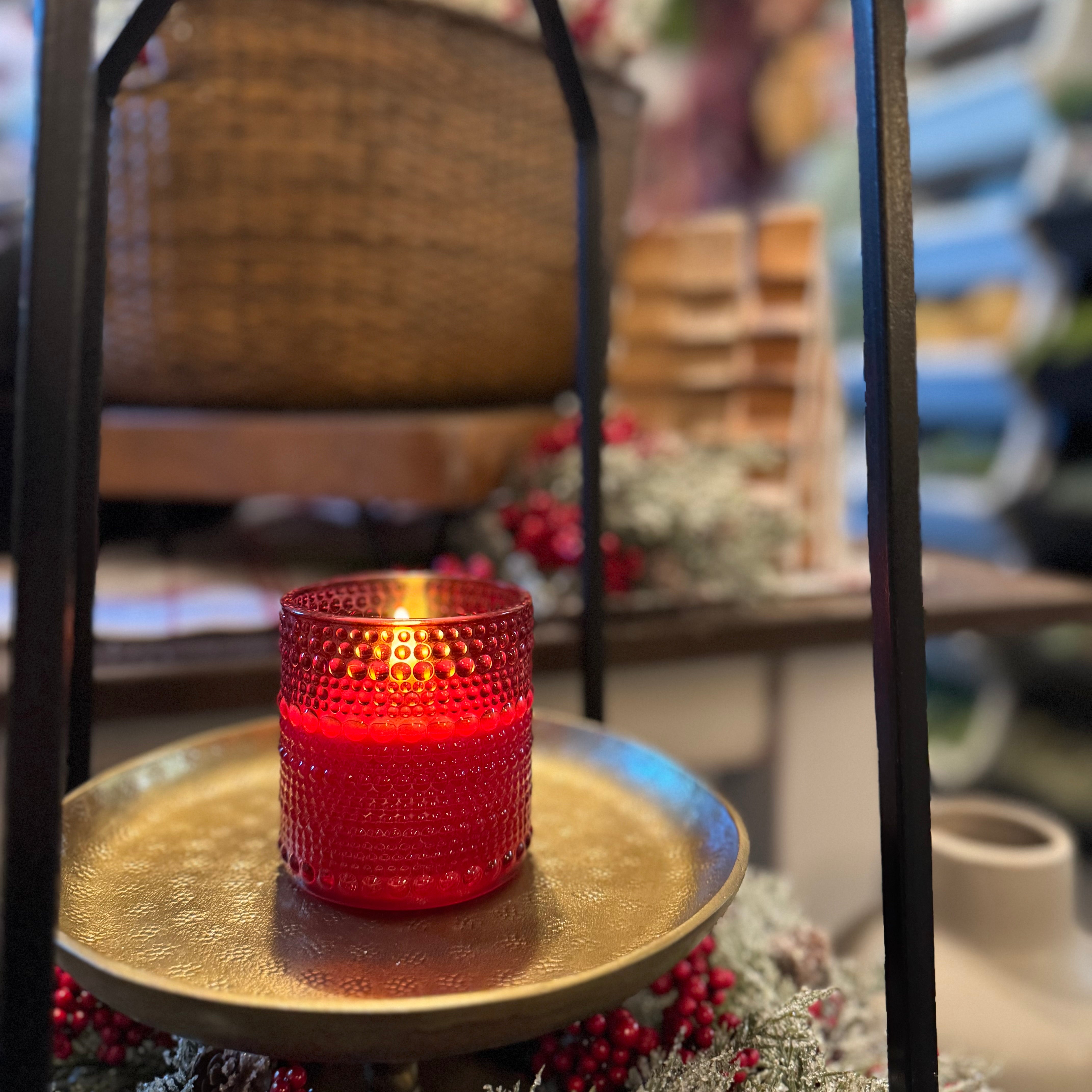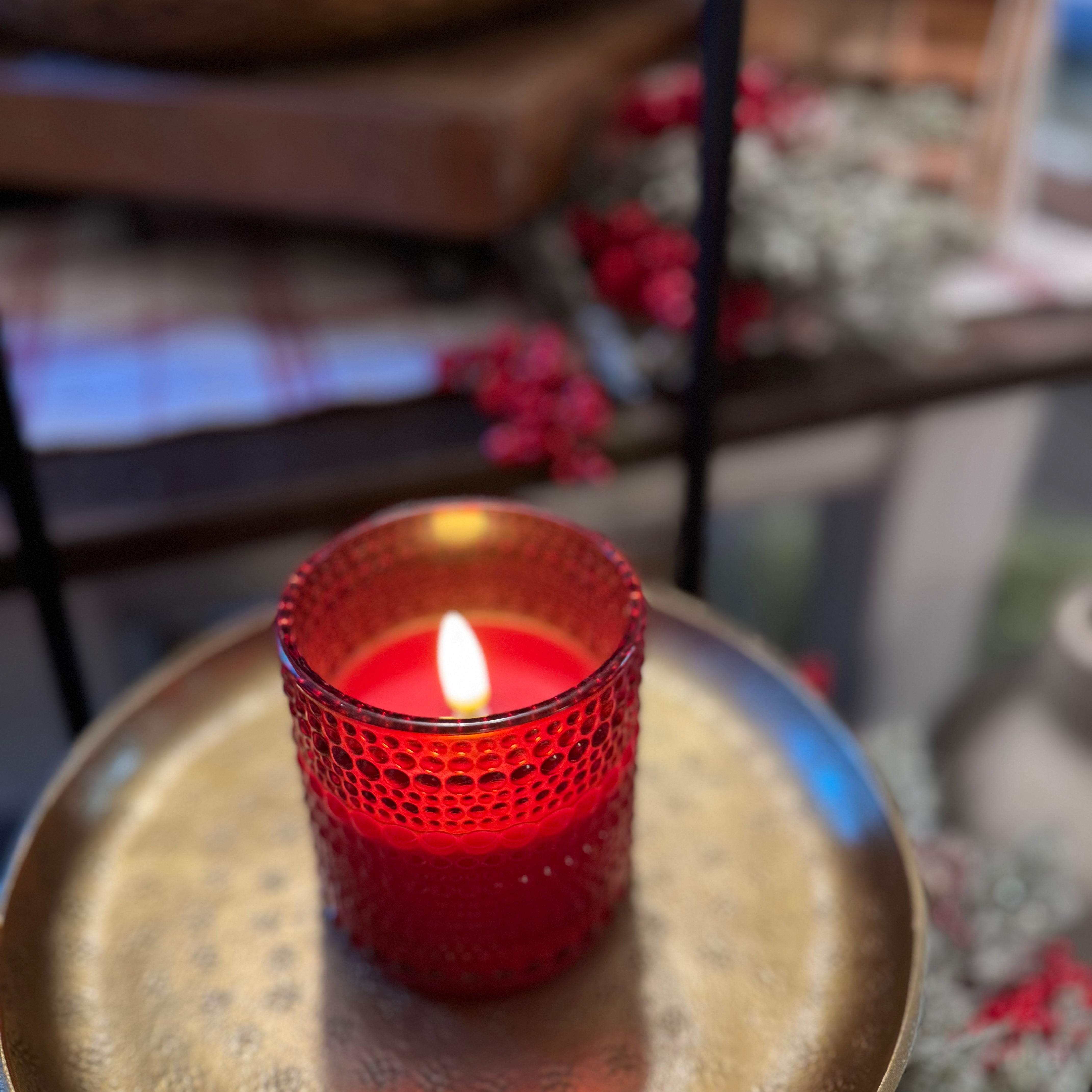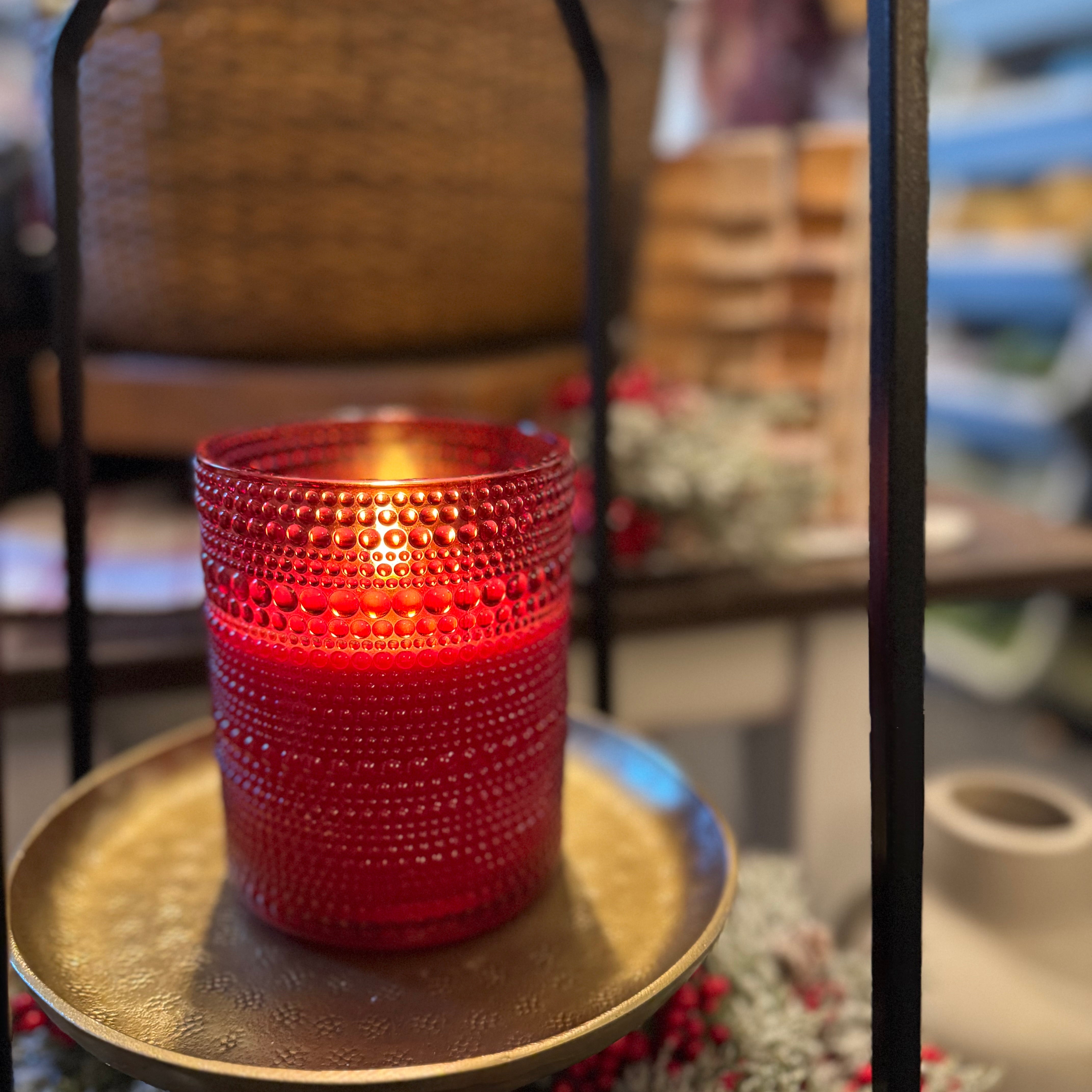 5” Red Dotted Glass 3D Flame Candle