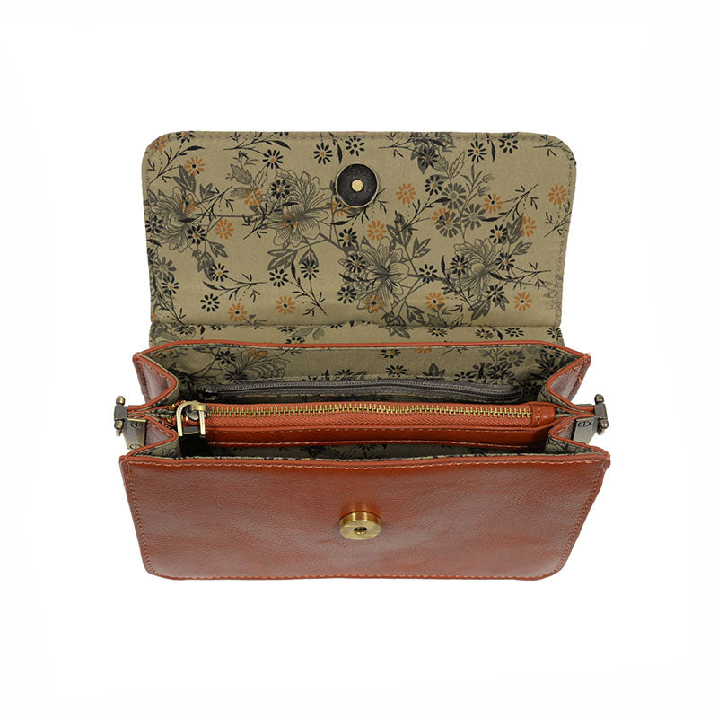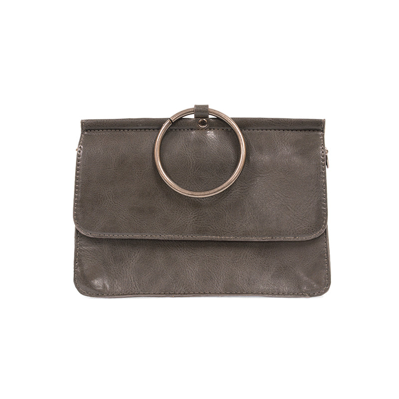Put a ring on it! With multiple compartments, it is just the right size to hold all your essentials. Wear it on your wrist with the metallic ring bracelet, carry as a clutch or wear as a crossbody with the detachable shoulder strap.