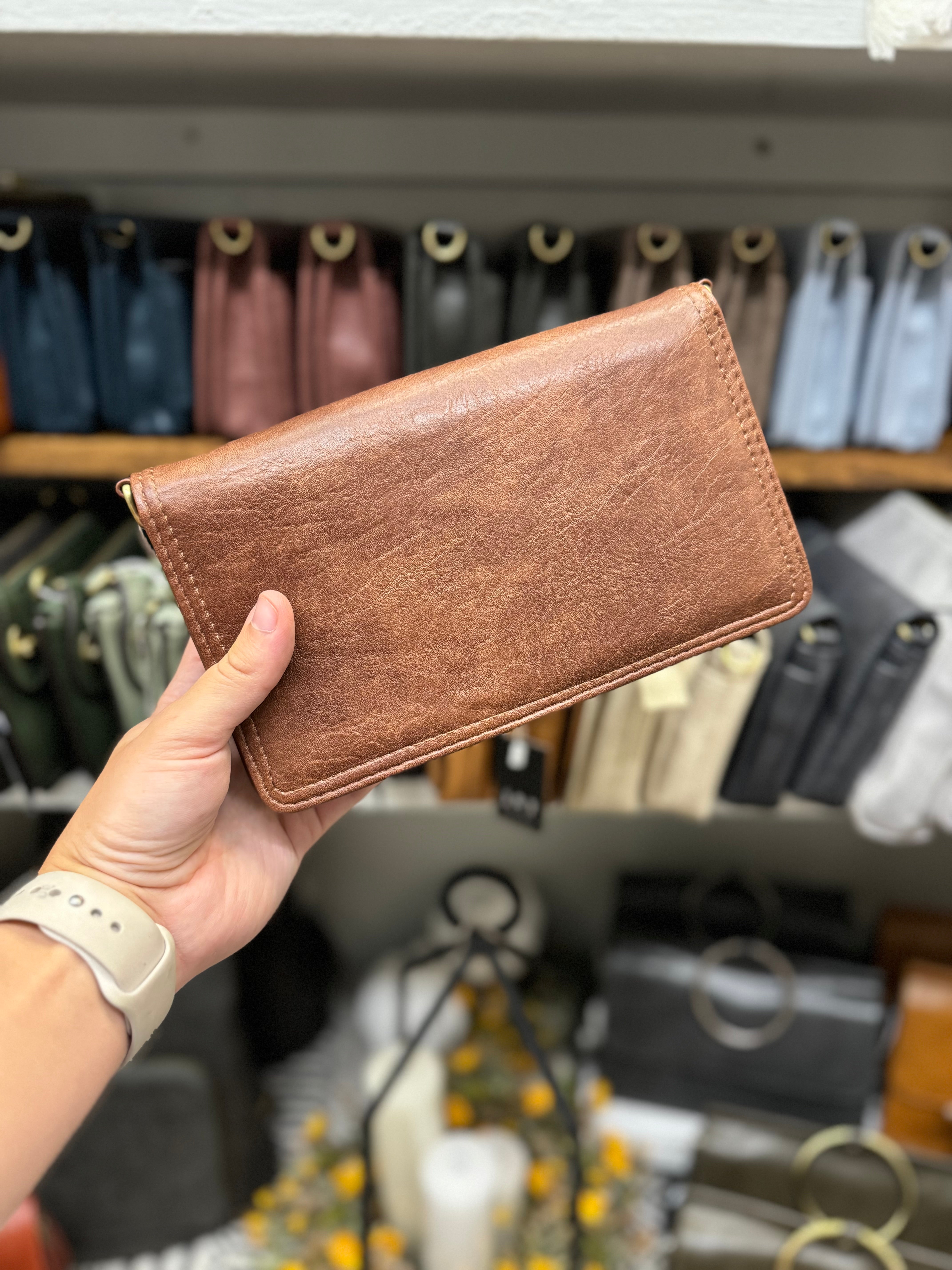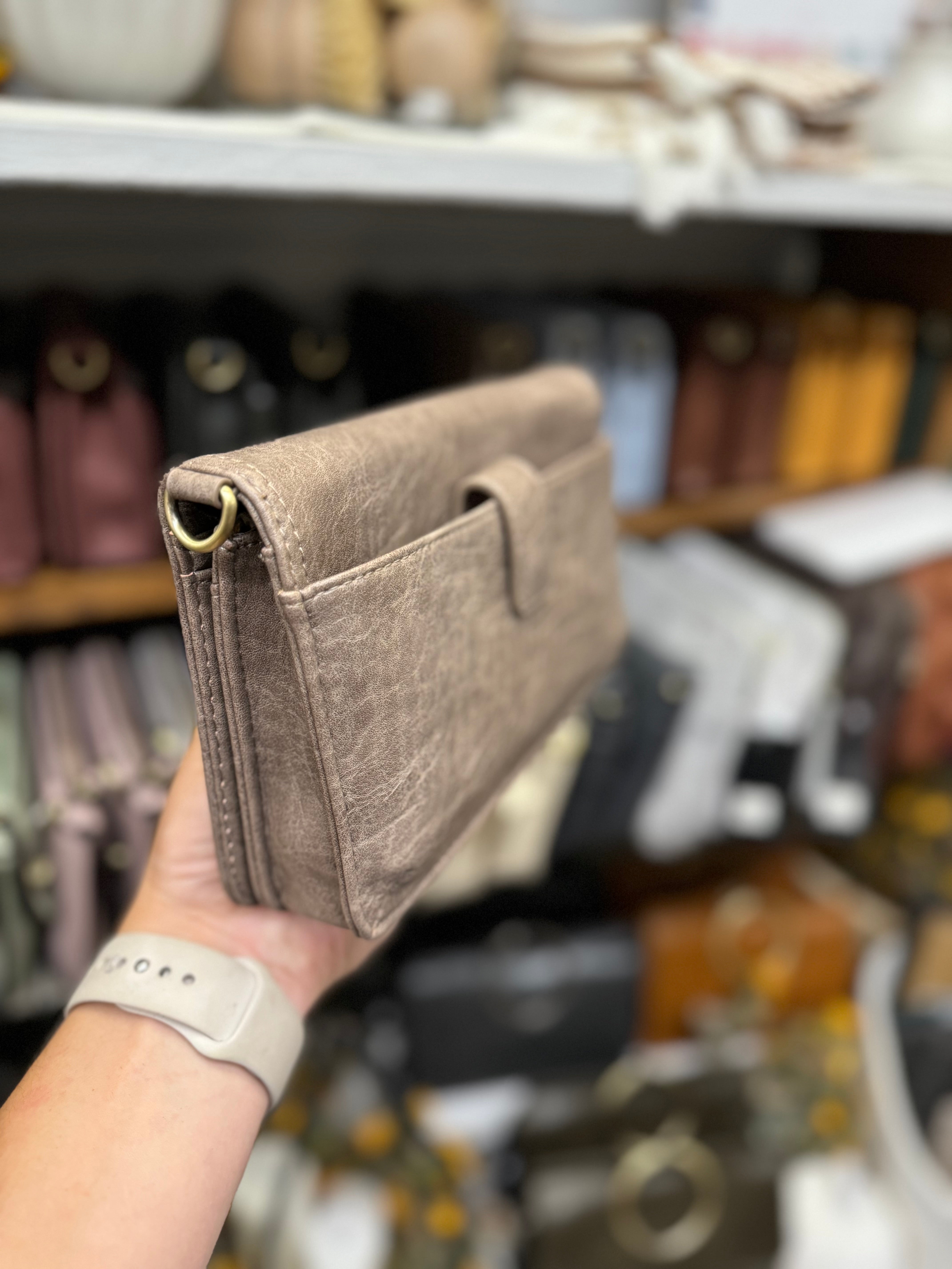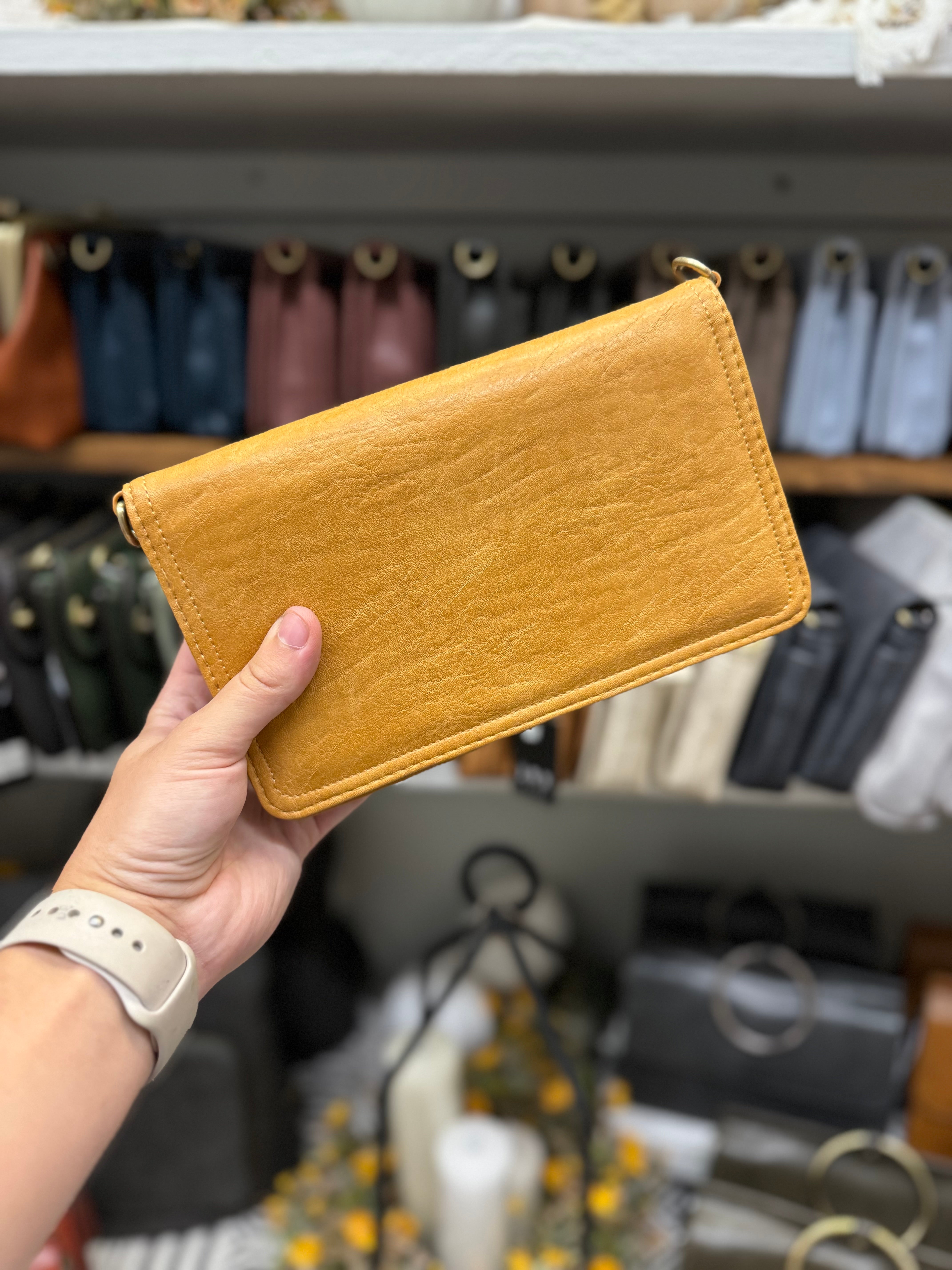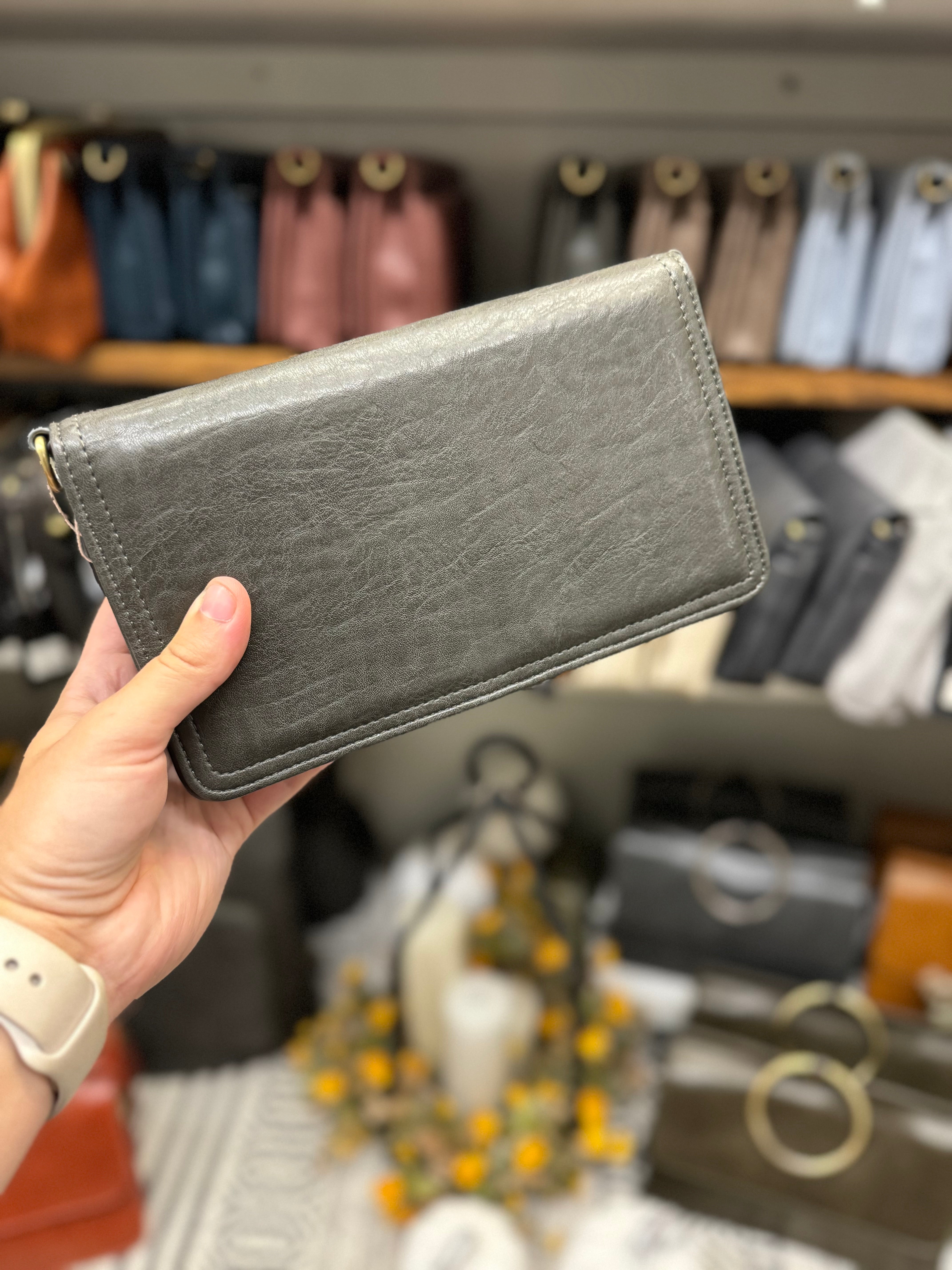 Luscious buffalo grain vegan leather in rich shades, give this compact bag a casual feel. With the convenient rear phone pocket, built in credit card pockets and multi compartments inside you will have space for everything you need to carry. Easily go from day to night with the detachable wrist strap and shoulder strap, you can carry as a cross body, a clutch, or a wristlet.
