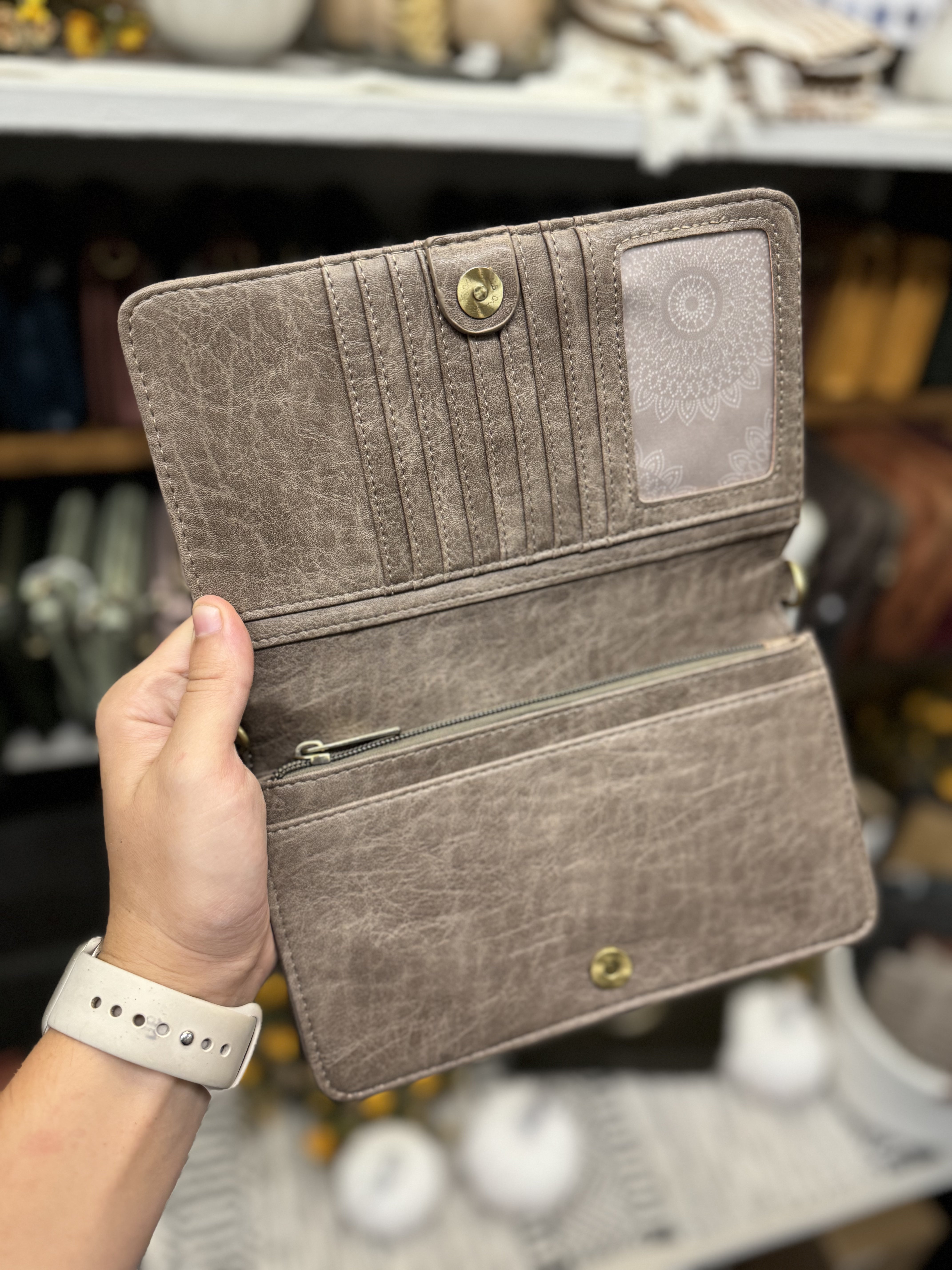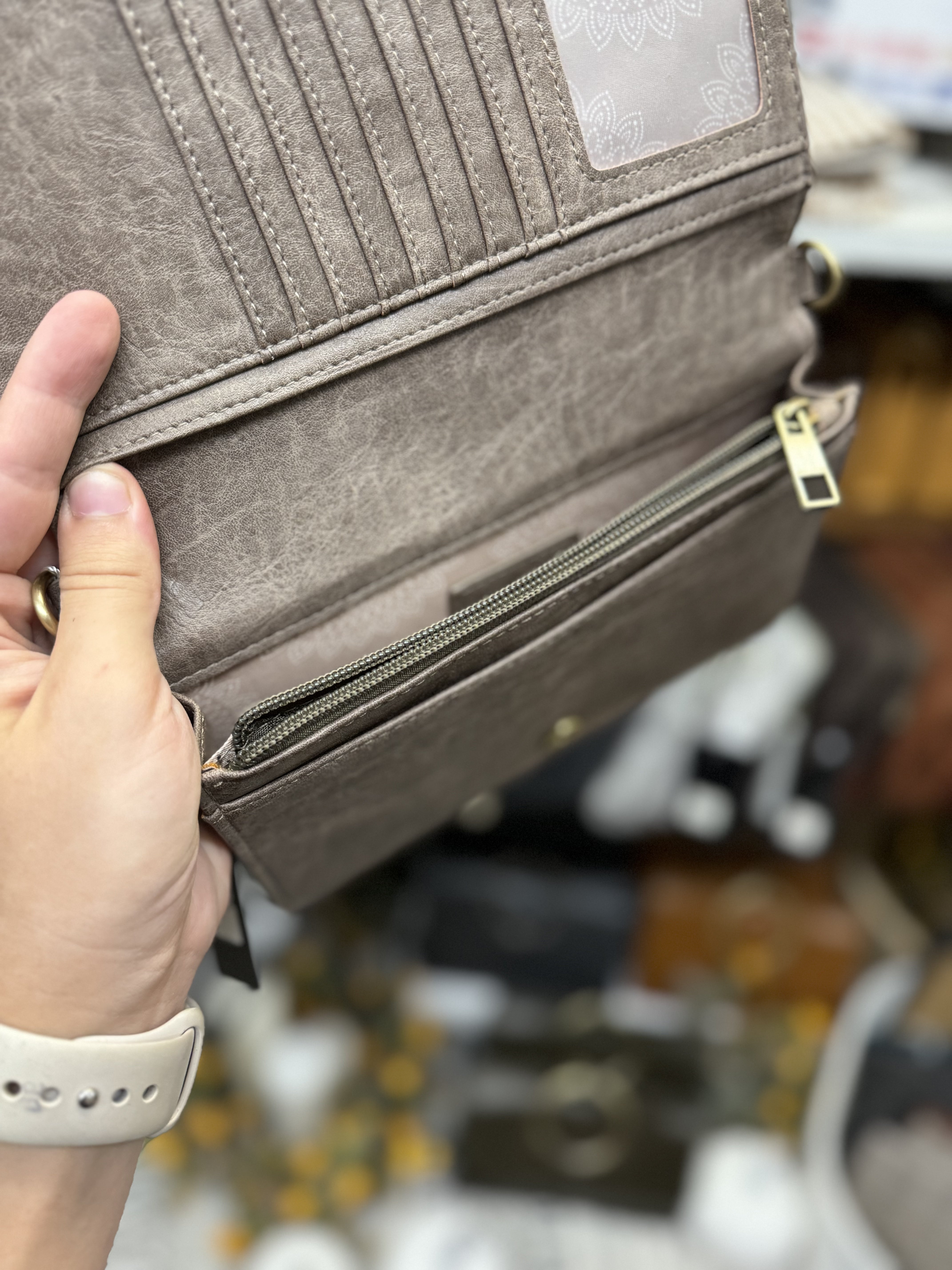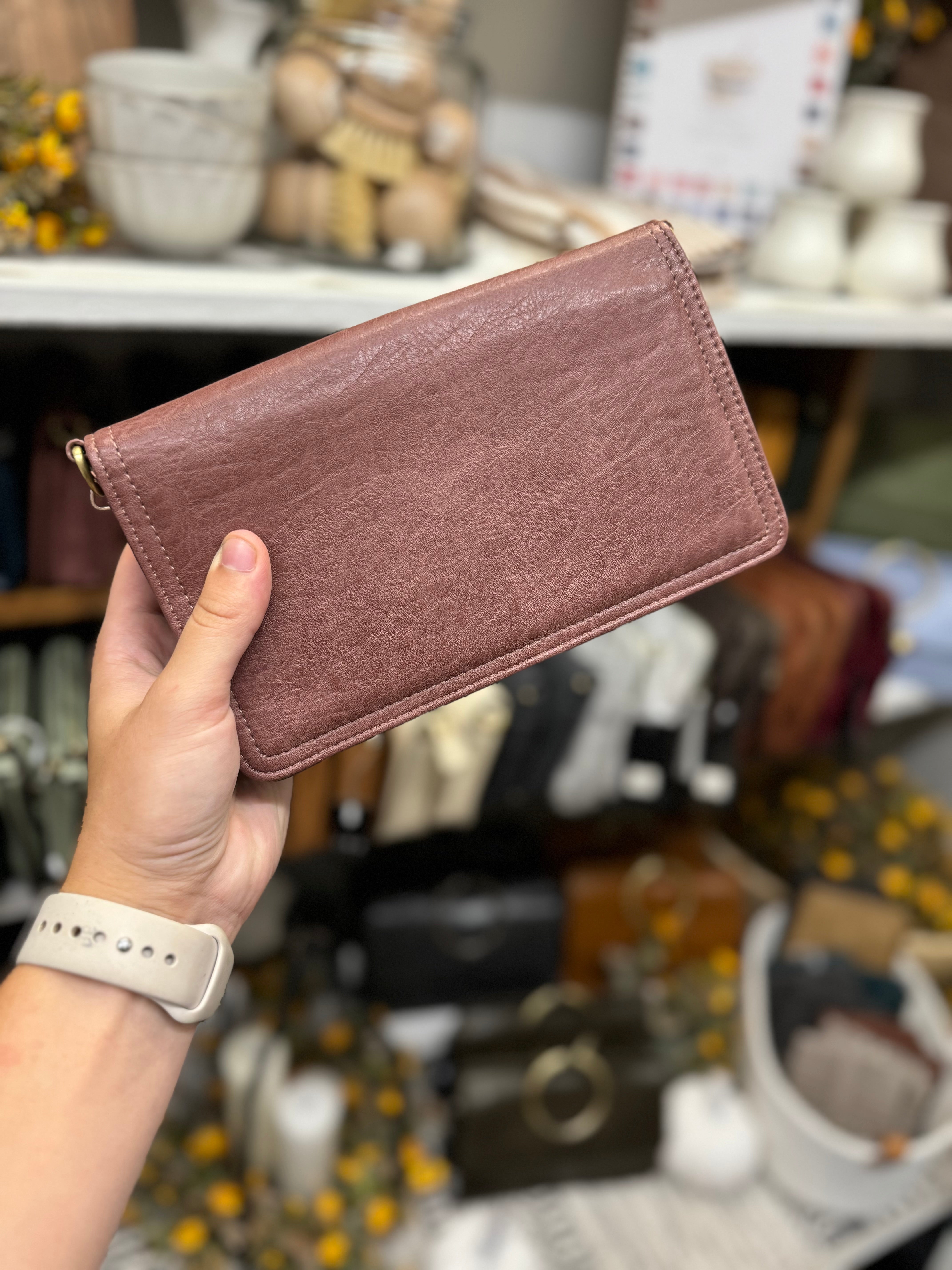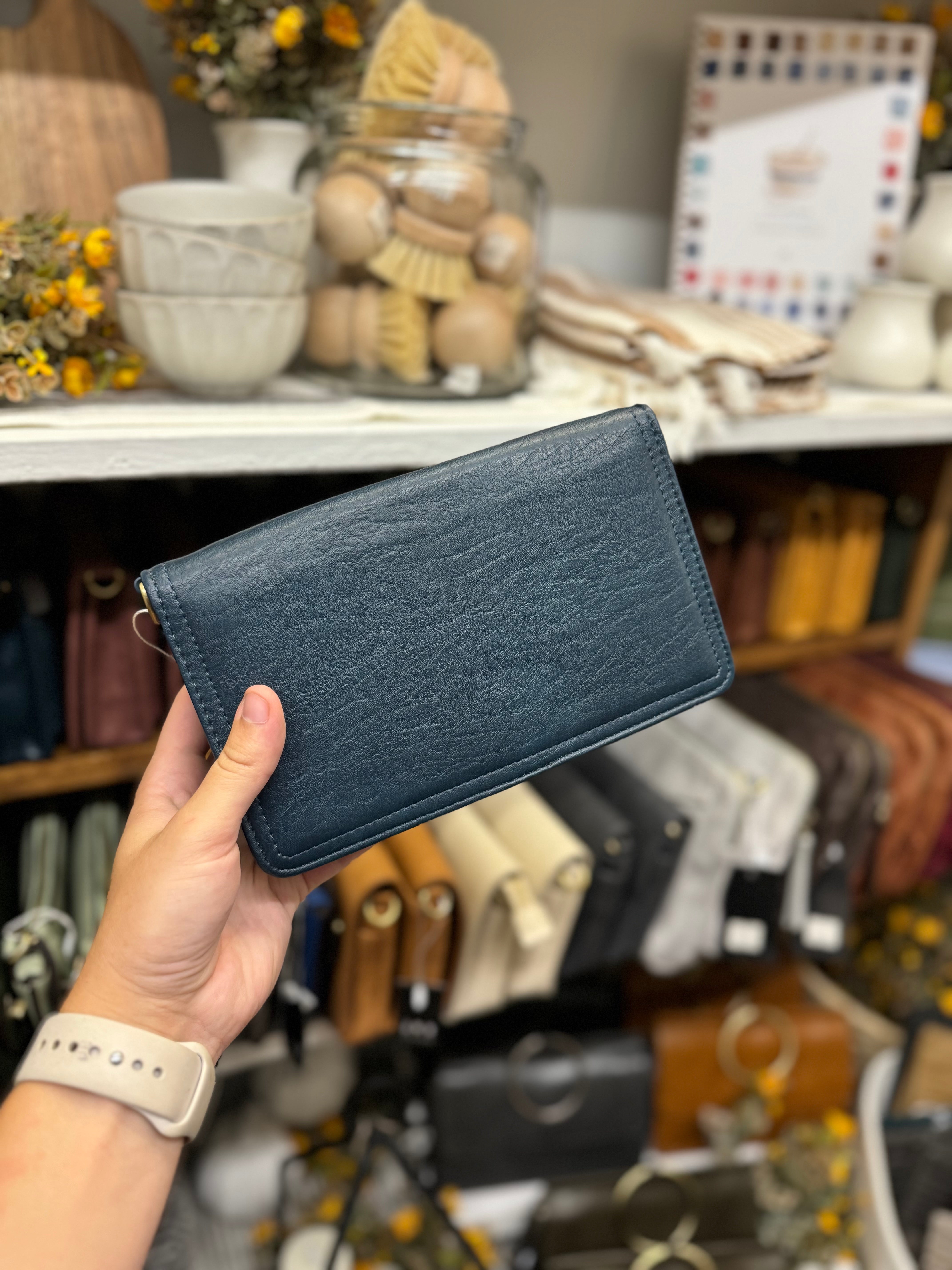 Luscious buffalo grain vegan leather in rich shades, give this compact bag a casual feel. With the convenient rear phone pocket, built in credit card pockets and multi compartments inside you will have space for everything you need to carry. Easily go from day to night with the detachable wrist strap and shoulder strap, you can carry as a cross body, a clutch, or a wristlet.