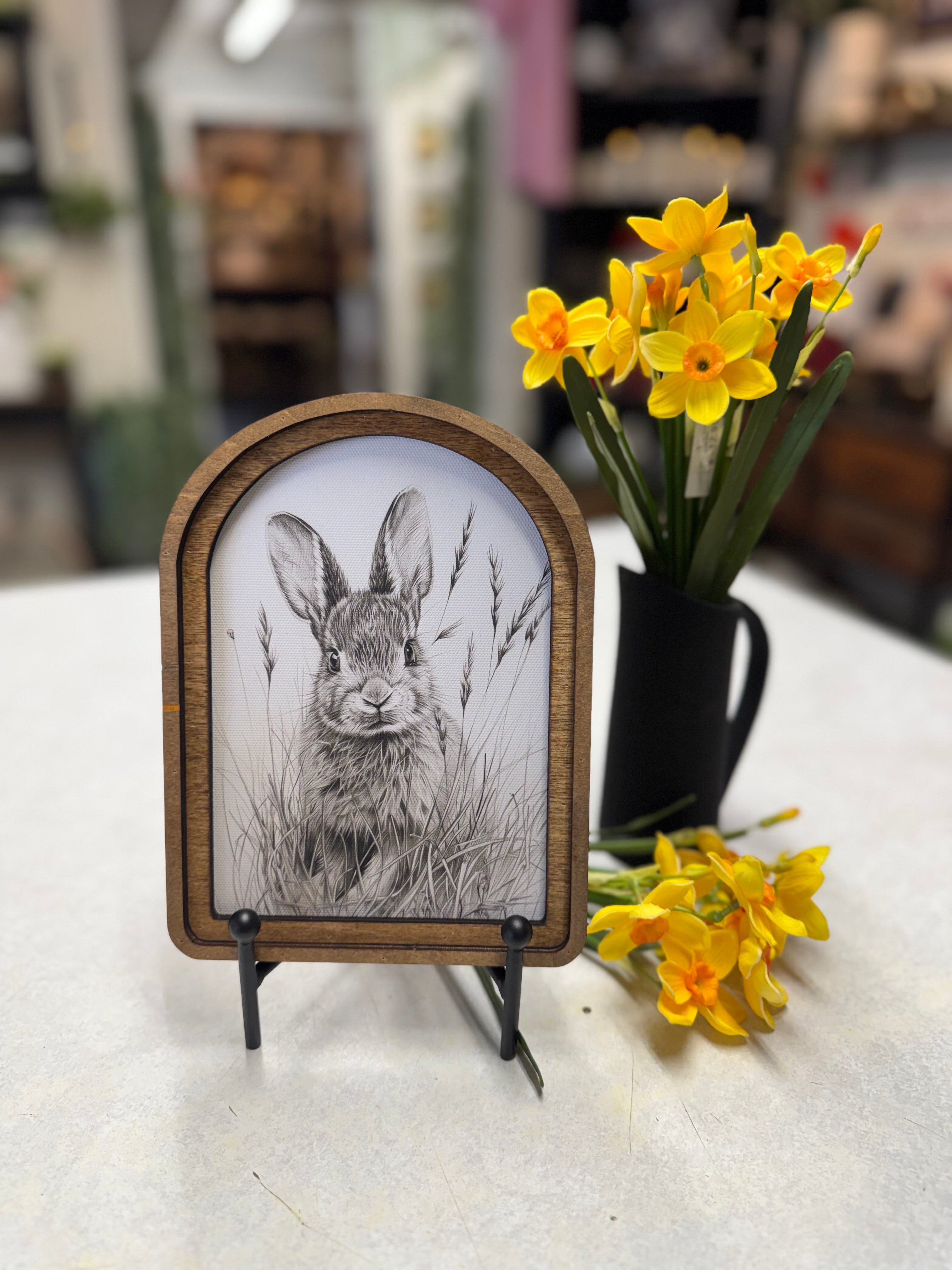 Arch Top Bunny Sketch Framed Art: 6”x8"